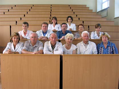 Профессор А. В. Архангельский Коллектив кафедры продолжил разрабатывать тематику прежних лет, но акцент был поставлен на изучении иммунных процессов при этих заболеваниях (А. В. Архангельский, Т. Г. Хомутова, Н. И. Завражнова, студент В. Ю. Клемашевич). В 80-х годах в медицину вошло понятие о ДВС — синдроме. Свертки крови многими отождествлялись с тромбами, и делались выводы о тяжелых последствиях этого явления. Коллектив кафедры лечебного факультета на основании большого материала показал ошибочность этих представлений (кандидатские диссертация В. И. Ковалева, кандидатская и докторская диссертации Г. Н. Масляковой). Одновременно с этими работами в содружестве с кафедрой госпитальной хирургии педиатрического факультета (проф. В. Н. Кошелев) выполнено 7 кандидатских диссертаций, в которых с помощью морфологических методик определялась терапевтическая эффективность и параметры лазерного облучения больных тонзиллитами, хроническими язвами кожи, язвенной болезнью и др.
