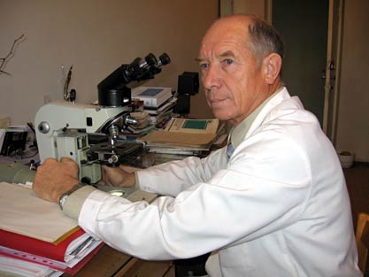 Профессор А. В. Архангельский Коллектив кафедры продолжил разрабатывать тематику прежних лет, но акцент был поставлен на изучении иммунных процессов при этих заболеваниях (А. В. Архангельский, Т. Г. Хомутова, Н. И. Завражнова, студент В. Ю. Клемашевич). В 80-х годах в медицину вошло понятие о ДВС — синдроме. Свертки крови многими отождествлялись с тромбами, и делались выводы о тяжелых последствиях этого явления. Коллектив кафедры лечебного факультета на основании большого материала показал ошибочность этих представлений (кандидатские диссертация В. И. Ковалева, кандидатская и докторская диссертации Г. Н. Масляковой). Одновременно с этими работами в содружестве с кафедрой госпитальной хирургии педиатрического факультета (проф. В. Н. Кошелев) выполнено 7 кандидатских диссертаций, в которых с помощью морфологических методик определялась терапевтическая эффективность и параметры лазерного облучения больных тонзиллитами, хроническими язвами кожи, язвенной болезнью и др.